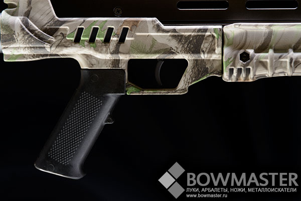 В заключении отметим, что колодка и направляющая арбалета сделаны из прочнейшего дюралюминия, а материалом для приклада и цевья послужил ударостойкий оружейный стеклопластик. Высококачественное камуфляжное покрытие арбалета обеспечивает в полевых условиях идеальную маскировку на местности.