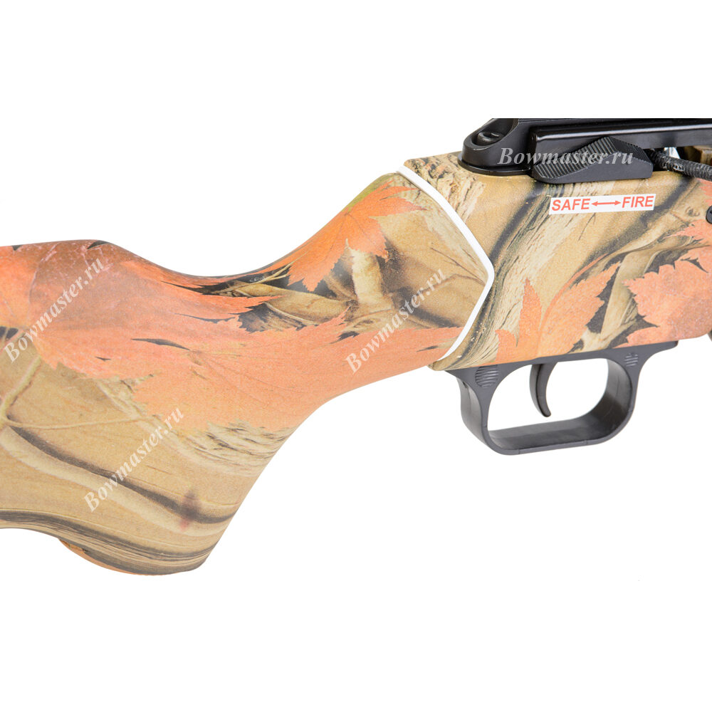 Рекурсивный арбалет mk 150A1AC поставляется вместе с диоптрийным прицелом открытого типа. Его можно калибровать по высоте, или же по направлению, а мушка прицела регулировке не поддаётся. Модель была оснащена автоматическим предохранителем, который обезопасит стрелка от совершения выстрела по неосторожности или в холостую. Срабатывает предохранитель автоматически, а снять его можно одним движением пальца. Несколько слов о сбалансированности конструкции. После заряжания подвижное стремя арбалета mk 150A1AC убирается под цевье, что решает проблему перевеса орудия и делает стрельбу более комфортной и точной.